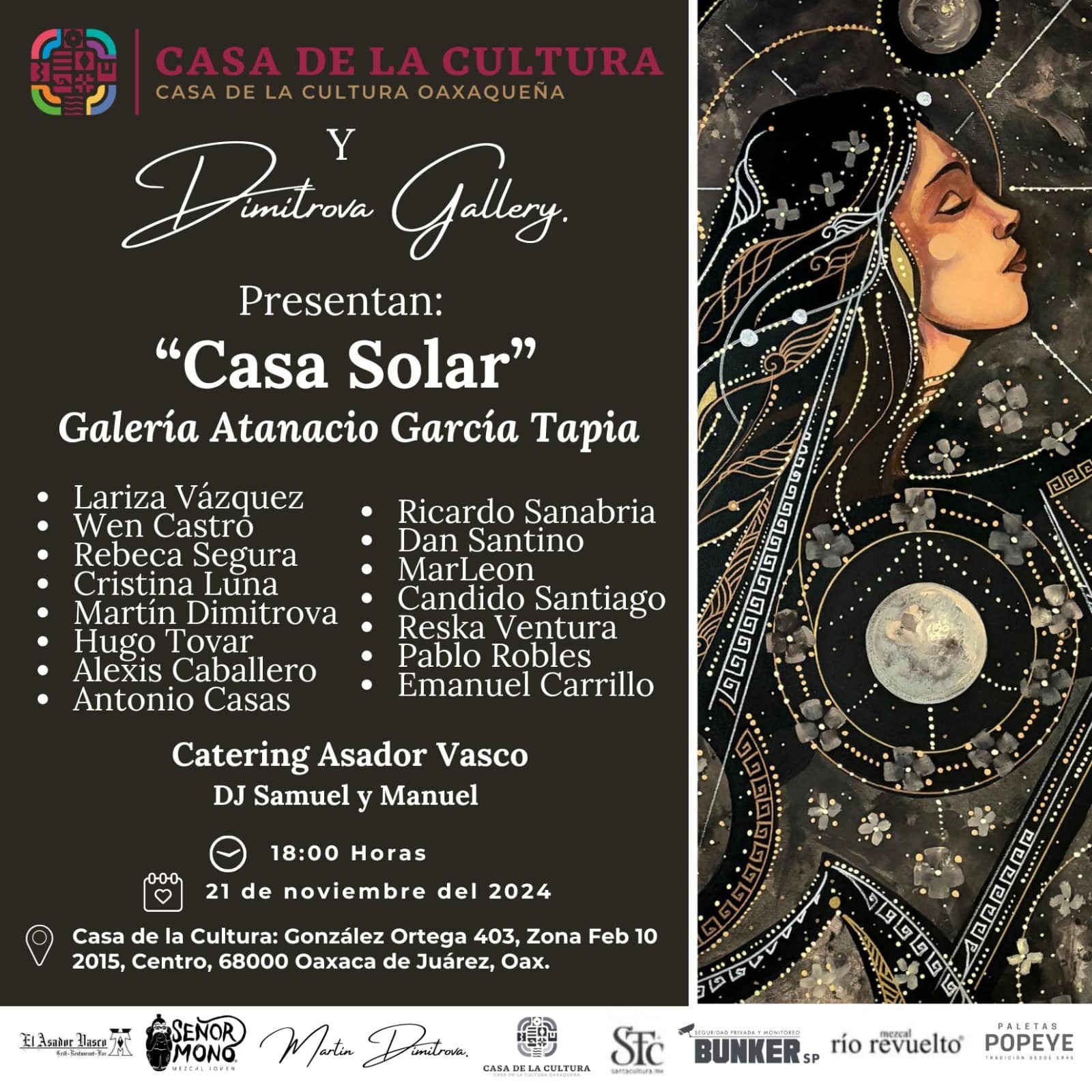 En esta actividad participarán 15 artistas de Dimitrova Gallery, como Lariza Vásquez, Wen Castro, Rebeca Segura, Cristina Luna, Martín Dimitrova, Hugo Tovar, Alexis Caballero y Antonio Casas.