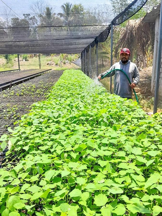 Actualmente, este vivero produce más de 9 especies forestales y frutales, cuidadosamente seleccionadas por su valor ecológico y su adaptabilidad al entorno.