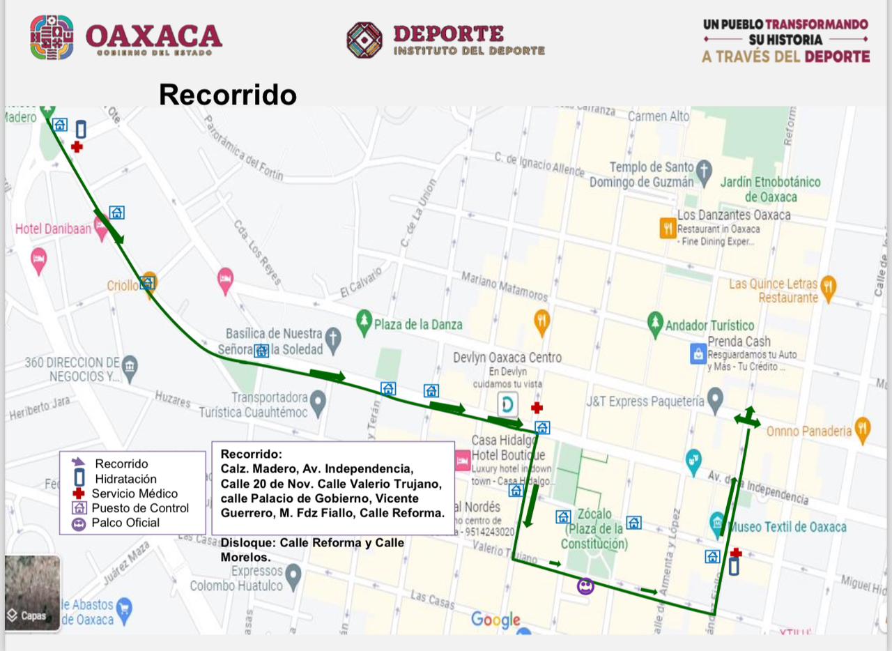 El espectáculo iniciará en la calzada Madero a la altura del Jardín Francisco I. Madero para tomar la avenida Independencia hasta entroncar con la calle 20 de Noviembre y continuar sobre la calle Valerio Trujano y pasar por el templete ubicado en el Palacio de Gobierno y seguir sobre la calle Vicente Guerrero.