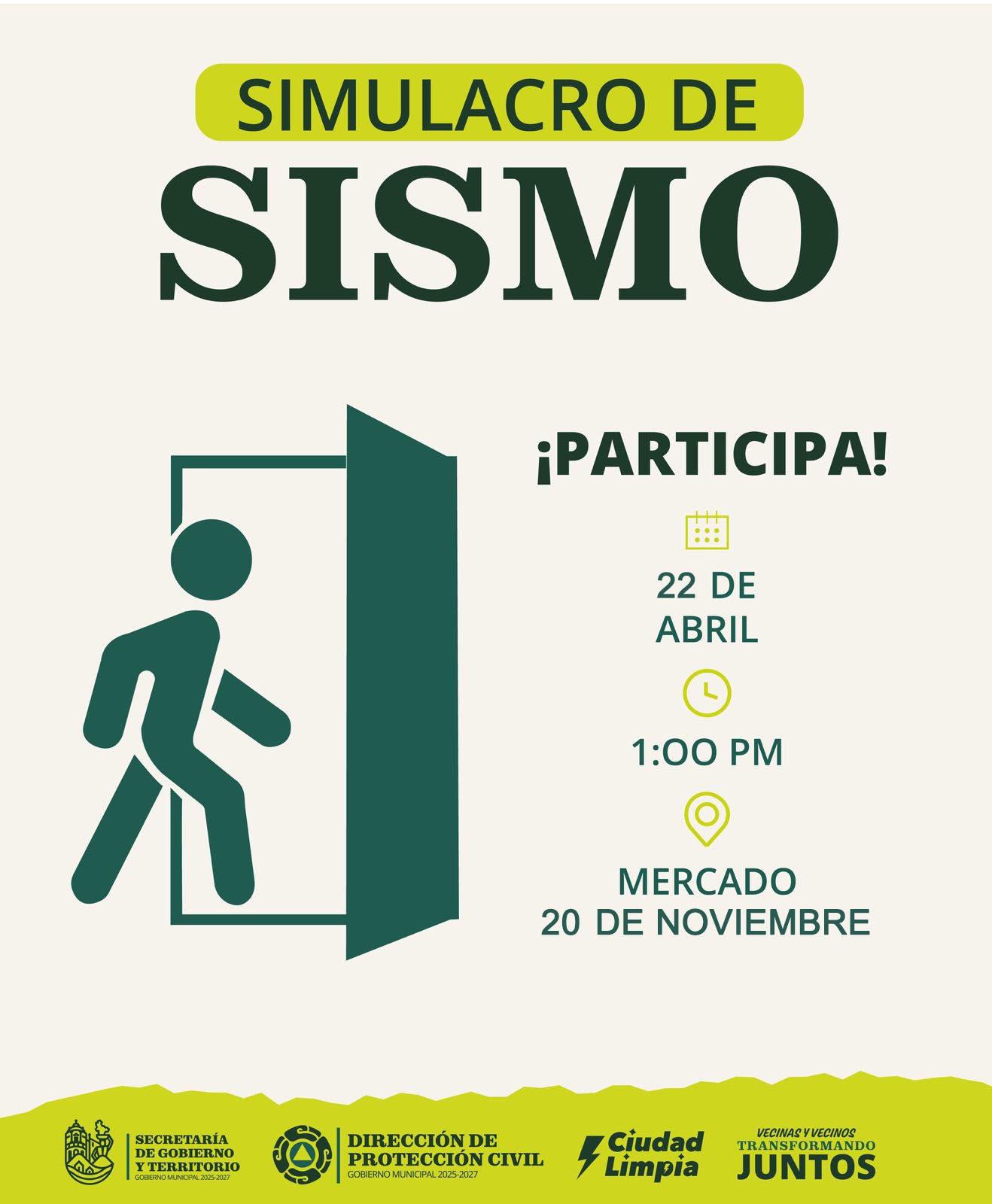 La Secretaría de Gobierno y Territorio Municipal de Oaxaca de Juárez, mediante la Dirección de Protección Civil continúa fortaleciendo las acciones de prevención y atención ante emergencias mediante la realización de un simulacro de sismo programado para el miércoles 22 de abril a las 13:00 horas en el Mercado 20 de Noviembre.