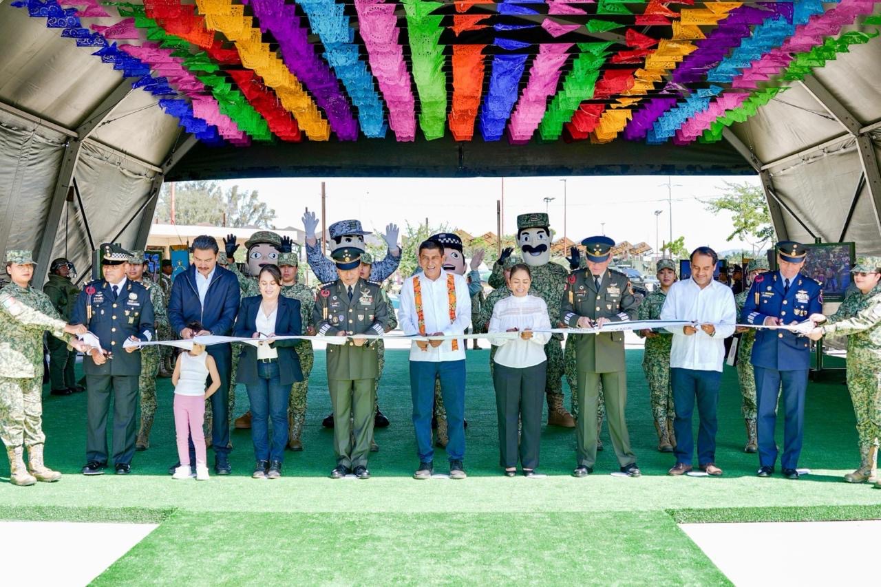 Oaxaca de Juárez, Oax. 8 de agosto de 2025.- El Gobernador Salomón Jara Cruz y la Presidenta Honoraria del Sistema Estatal DIF, Irma Bolaños Quijano inauguraron la exposición interactiva La Gran Fuerza de México, que promueve la Secretaría de la Defensa Nacional (Defensa) en el Parque Primavera Oaxaqueña Cho Ndobá.