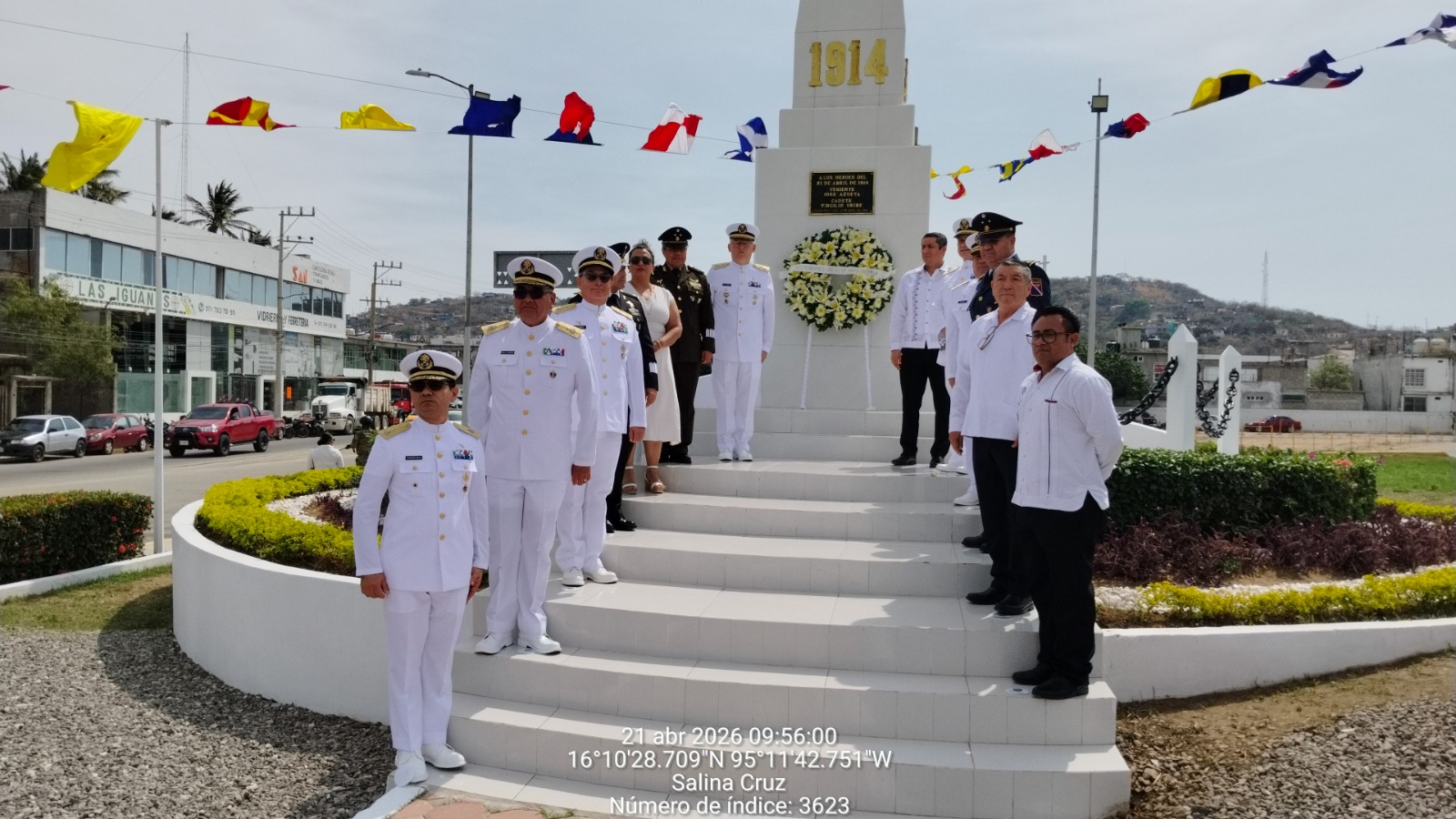 Salina Cruz, Oax.- La Secretaría de Marina a través de la Décima Región Naval, con sede en Salina Cruz, informa que hoy se llevó a cabo la Ceremonia Conmemorativa del 112 Aniversario de la Gesta Heroica del 21 de abril de 1914, en el Puerto de Veracruz.