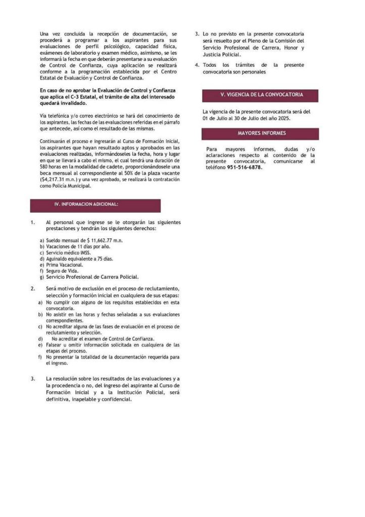 El Municipio de Oaxaca de Juárez, a través de la Secretaría de Seguridad Vecinal, emitió la segunda convocatoria del año para participar en el proceso de reclutamiento, selección, formación inicial, certificación e ingreso a la Policía Municipal, dirigida a personas con vocación de servicio, honestidad, lealtad y disciplina.