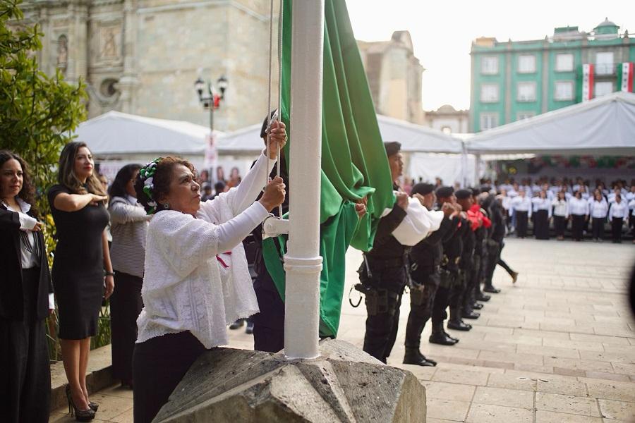 Acompañada de representantes de mujeres que laboran en diferentes sectores de la entidad, la funcionaria encabezó el izamiento de la Bandera Nacional en la Alameda de León, en donde recordó a Josefa Ortiz de Domínguez, Leona Vicario, Mariana Rodríguez del Toro, Gertrudis Bocanegra, entre otras que lucharon con valentía e inteligencia para abrir nuevas oportunidades hacia la libertad.
