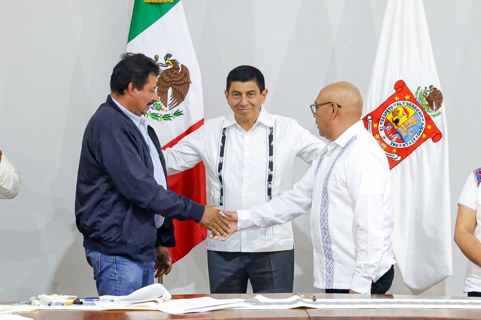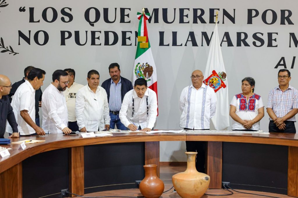 “Estaremos siempre en la mejor disposición para trabajar por Oaxaca y su transformación, con este acuerdo hacemos votos para que la paz perdure, solo la unión será el puente entre todas y todo, la unión nos ha hecho fuertes en la adversidad y seguirá siendo un aliciente para formar un mejor presente y un futuro para el bien del pueblo”, precisó.