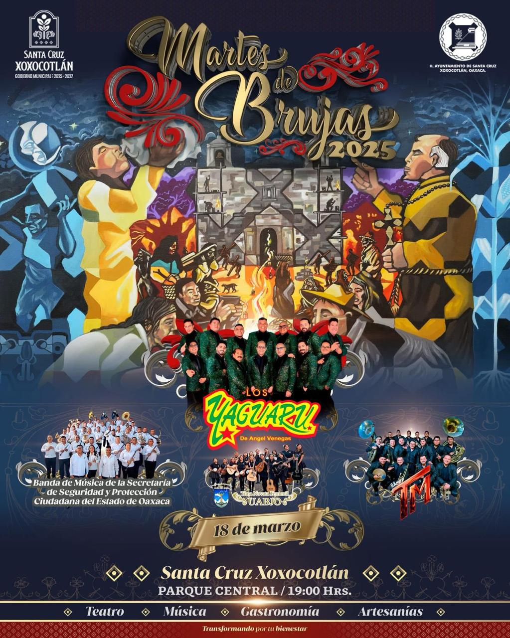 Santa Cruz Xoxocotlán, Oaxaca. 17 de marzo de 2025. Al ritmo de la cumbia mexicana y la banda, el segundo Martes de Brujas en Santa Cruz Xoxocotlán será una noche llena de alegría, magia y tradición.