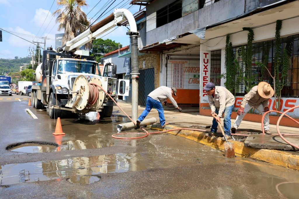 Con apoyo del equipo hidroneumático se han absorbido más de 25 metros cúbicos de aguas residuales y retirado 41 metros cúbicos de desechos sólidos. Desde el 11 de octubre, a través del Departamento de Alcantarillado se han atendido 81 reportes: 29 por fugas de aguas negras y 50 por desazolves en pozos de visita y redes de drenaje.