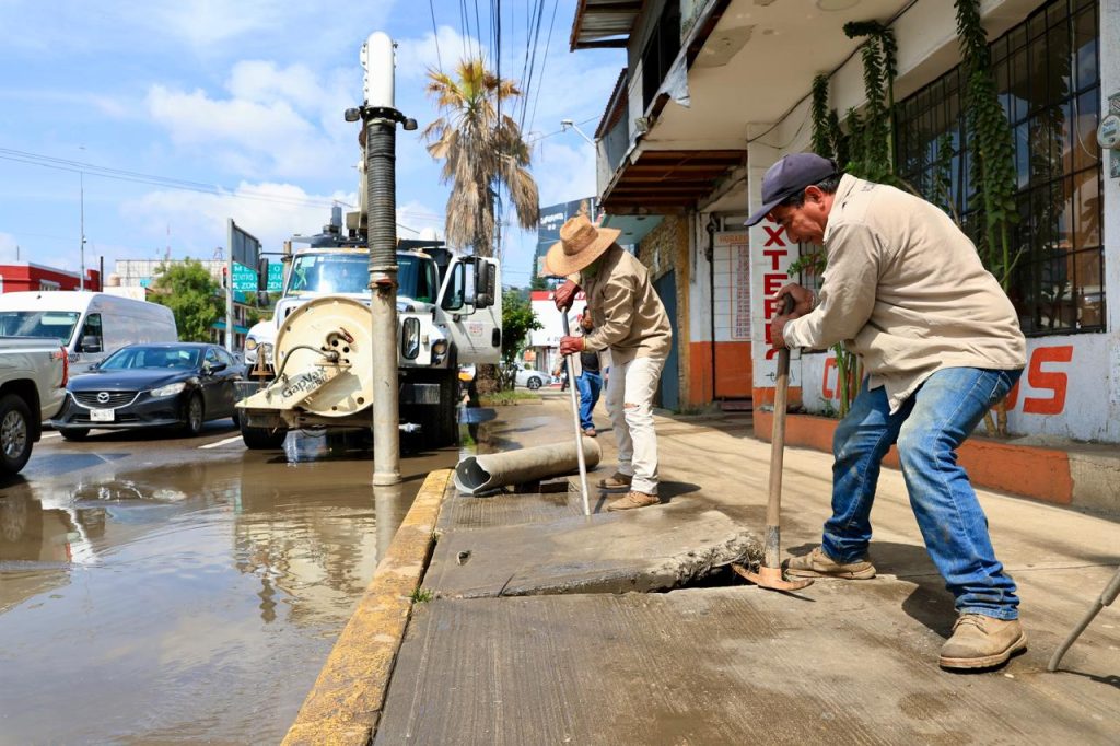 Oaxaca de Juárez, Oax. 22 de octubre de 2024.- Derivado de las lluvias provocadas por el paso de la tormenta tropical “Nadine”, el Sistema Operador de los Servicios de Agua Potable y Alcantarillado (Soapa) mantiene activa una brigada de atención inmediata para evitar afectaciones por encharcamientos, además de realizar desazolves en los sistemas de drenaje.