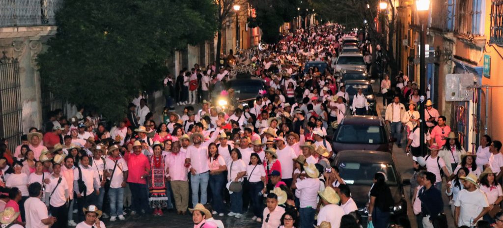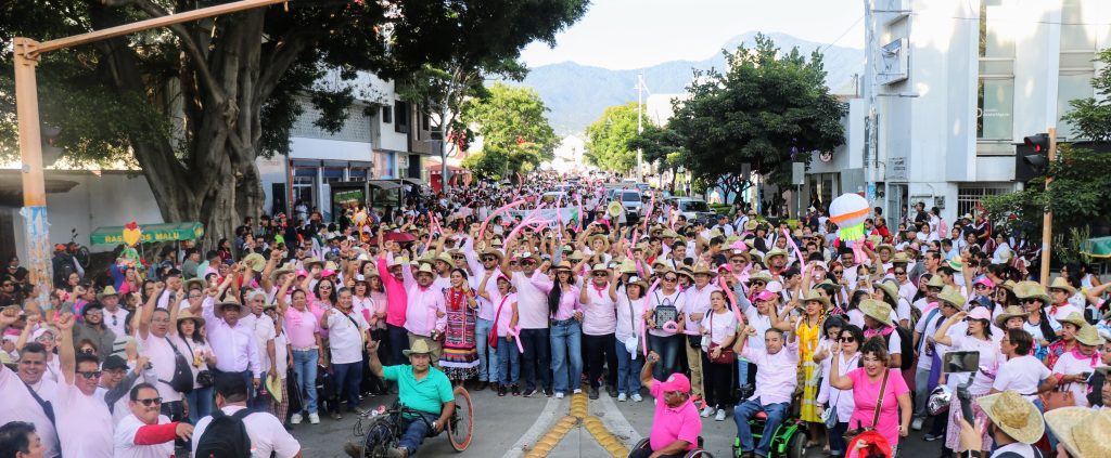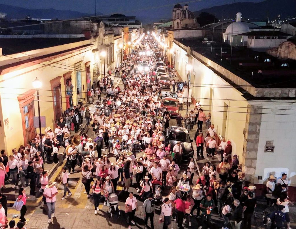 En el marco de las festividades del “Día del empleado” 2024, más de siete mil trabajadores ratificaron su confianza en el #ProyectoRosa, al portar algún distintivo de este color en la tradicional calenda que partió del edificio del Stpeidceo hacia la Basílica de nuestra Señora de la Soledad.