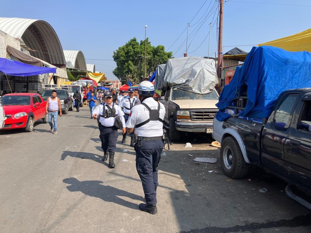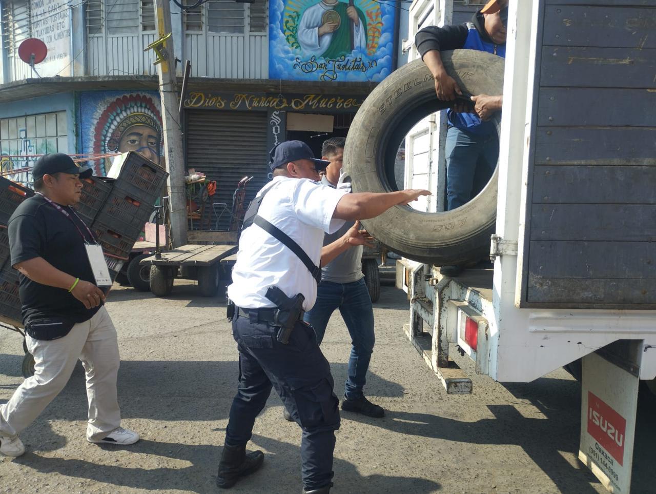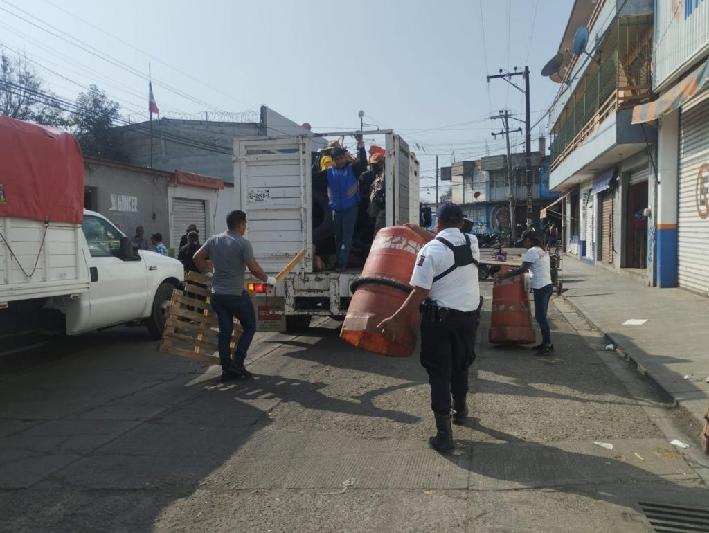En este despliegue operativo, las y los elementos de la corporación encabezada por Toribio López Sánchez, levantan objetos, llantas o botes que obstruyen el libre tránsito en los principales accesos a ese espacio comercial, que es el más grande del estado.