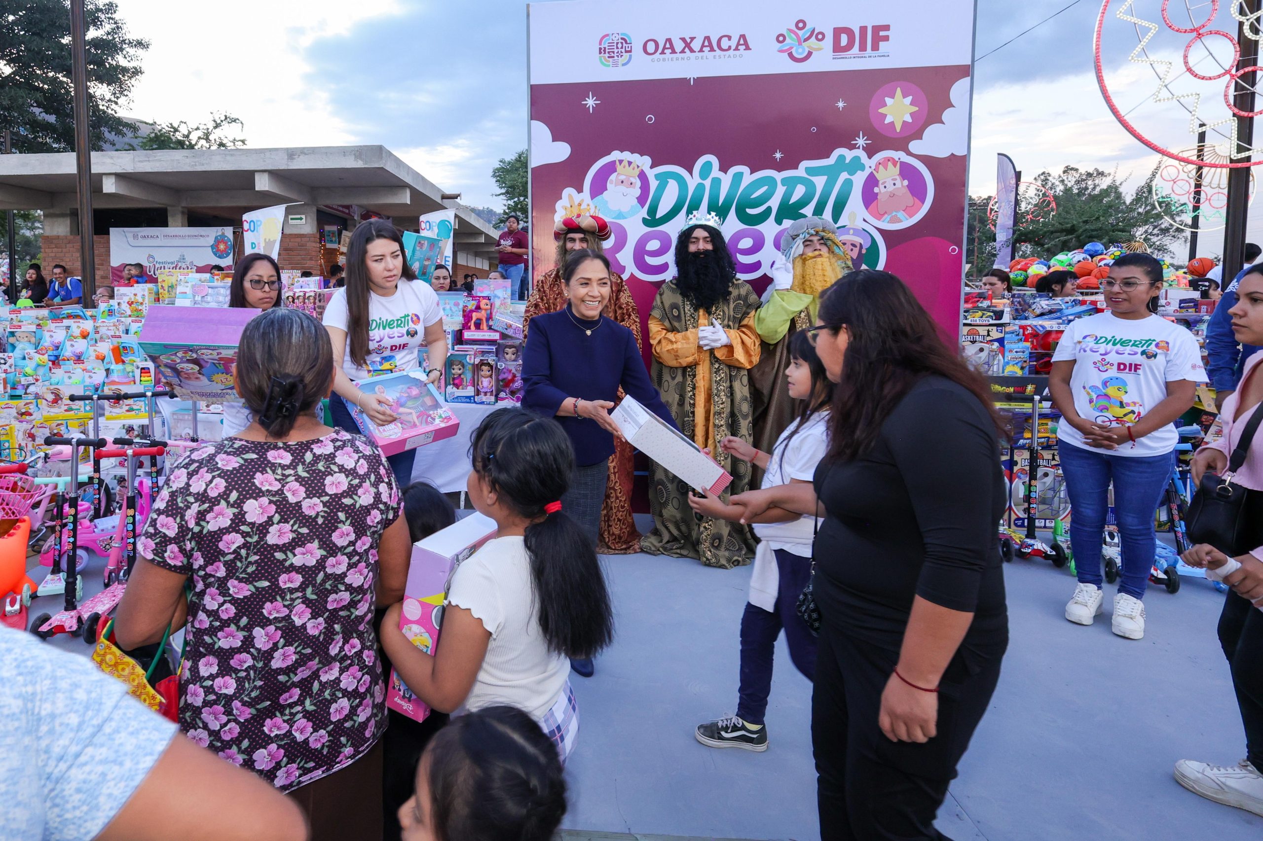 La Presidenta Honoraria del Sistema para el Desarrollo Integral de la Familia (DIF) Oaxaca, Irma Bolaños Quijano encabezó esta increíble celebración que superó la afluencia de visitantes y fue posible gracias a la participación de dependencias de la administración pública estatal, ya que permitió compartir la magia de las fiestas decembrinas y hacer efectivos sus derechos al juego, el esparcimiento y diversión.
