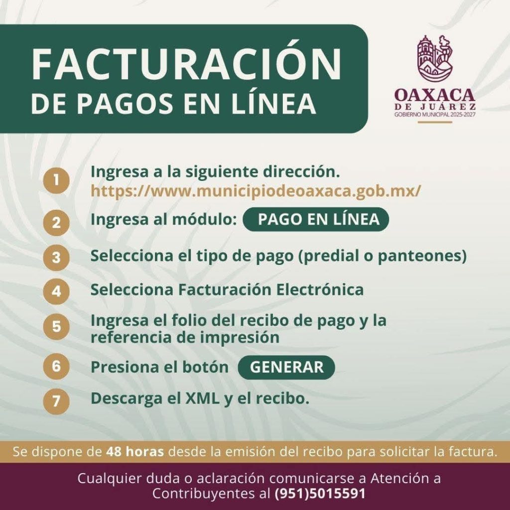 El pago también se puede realizar en línea a través del portal: www.municipiodeoaxaca.gob.mx.