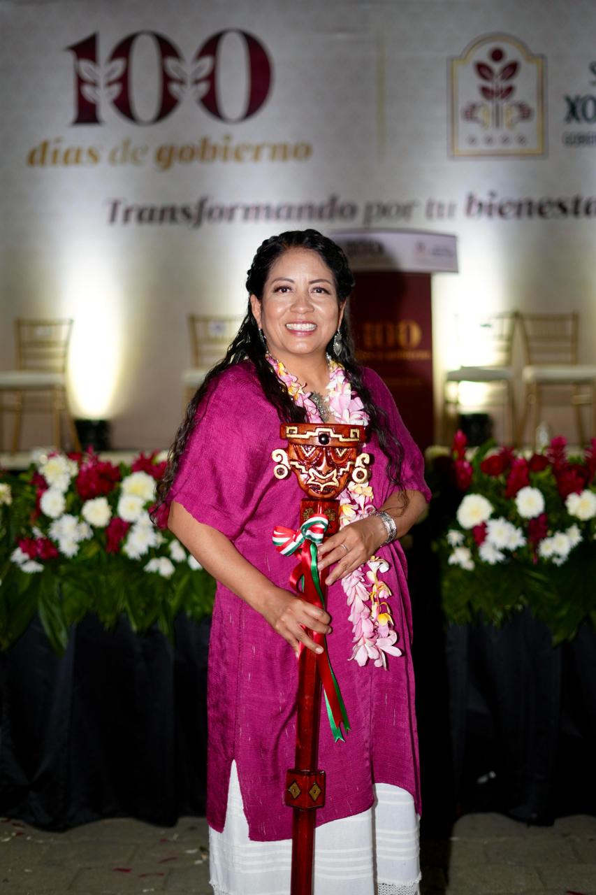 Era el mismo escenario donde, apenas 100 días atrás y con los primeros rayos del alba, Nancy Benítez Zárate tomó protesta como presidenta municipal de Santa Cruz Xoxocotlán. Esta vez, sin embargo, la escena era distinta: el calor de la jornada cedía paso a un ambiente de celebración y reconocimiento.