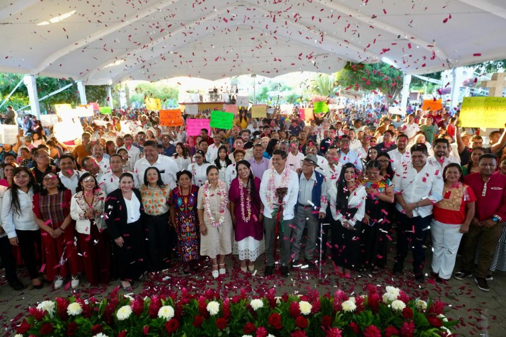 El gobernador de Oaxaca, Salomón Jara Cruz, fue también un protagonista de la tarde. Cada obra anunciada por Benítez Zárate era acompañada de su gesto de aprobación, un palmeo, una sonrisa, una muestra de respaldo que no pasó desapercibida.