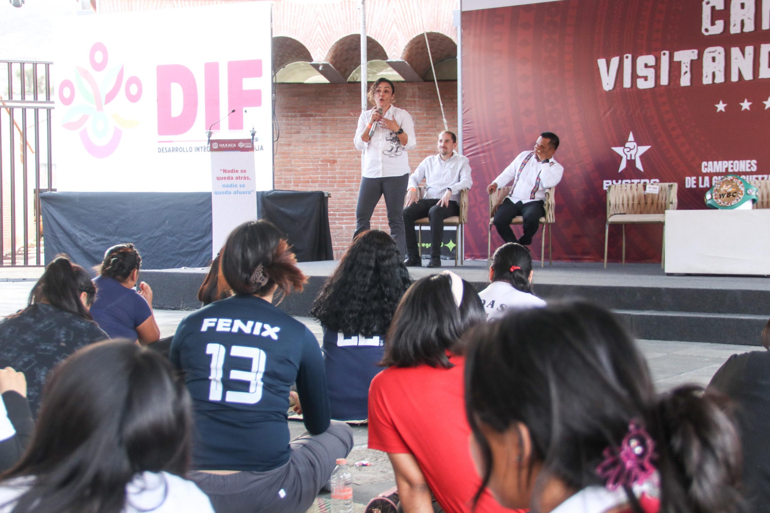 A nombre del Sistema DIF Oaxaca, la directora general del organismo Maribel Salinas Velasco agradeció a la y los boxeadores mexicanos por convivir con las niñas, niños y adolescentes de las casas hogar, y compartir su pasión por este deporte.