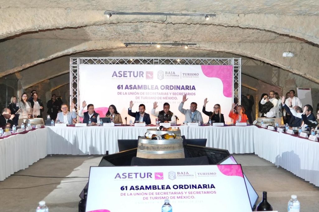 Ensenada, BC. 27 de abril de 2025.- Para fortalecer la promoción de los destinos turísticos de Oaxaca, la secretaria de Turismo, Saymi Pineda Velasco participó en la Sexagésima Primera Asamblea de la Unión de Secretarios de Turismo de México A.C. (Asetur), realizada en el marco del Tianguis Turístico de México 2025.