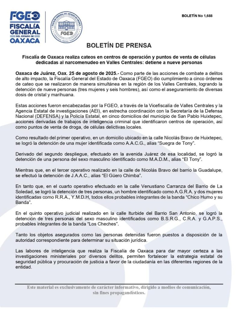 El Gobierno del Estado de Oaxaca (@GobOax) trabaja en estrecha coordinación con autoridades federales y municipales para garantizar el bienestar de la población y, en este caso, hace un llamado a las comunidades a privilegiar siempre el diálogo y la vía institucional como única ruta para la solución de los conflictos.