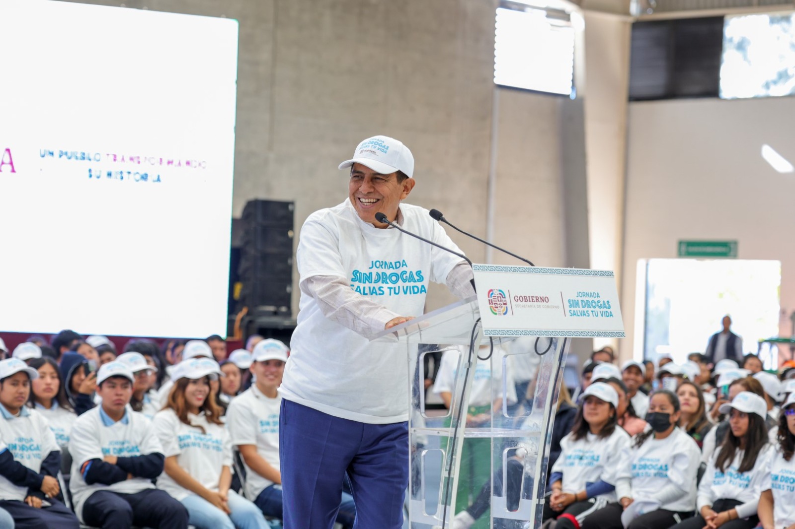 Oaxaca de Juárez, Oax. 31 de octubre de 2023.- En cumplimiento al eje de gobierno Atención a las causas, bienestar y paz social, el Gobernador del Estado Salomón Jara Cruz participó en el arranque de la jornada Sin droga salvas tu vida, en el cual se anunció el programa Mi primera chamba, dirigido a las juventudes de las ocho regiones de la entidad que hayan concluido sus estudios.