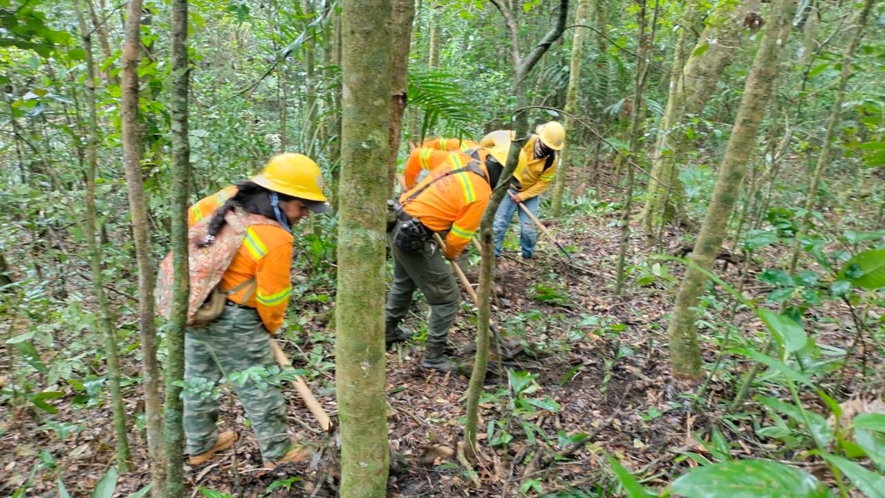 Oaxaca de Juárez, Oax. 14 de febrero de 2025. Elementos de la brigada oficial de combatientes de incendios forestales de la Comisión Estatal Forestal (Coesfo), con sede en San Antonio Chimalapa, llevaron a cabo la apertura de una brecha cortafuego con longitud de 1 kilómetro en el paraje El Retén, perteneciente a San Miguel Chimalapa.