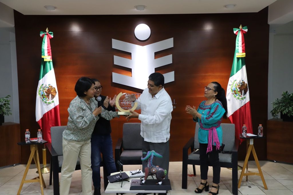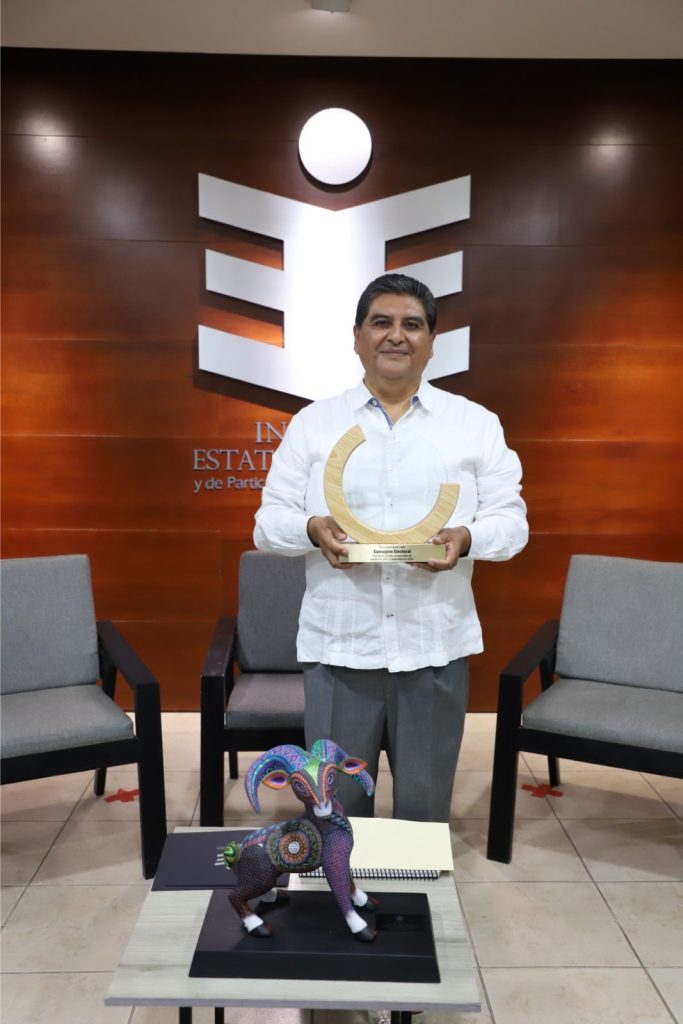 Al final del evento, la Consejera Presidenta del IEEPCO, entregó un reconocimiento al Consejero Almaraz Santibáñez por sus aportes y contribuciones a la cultura democrática del estado.