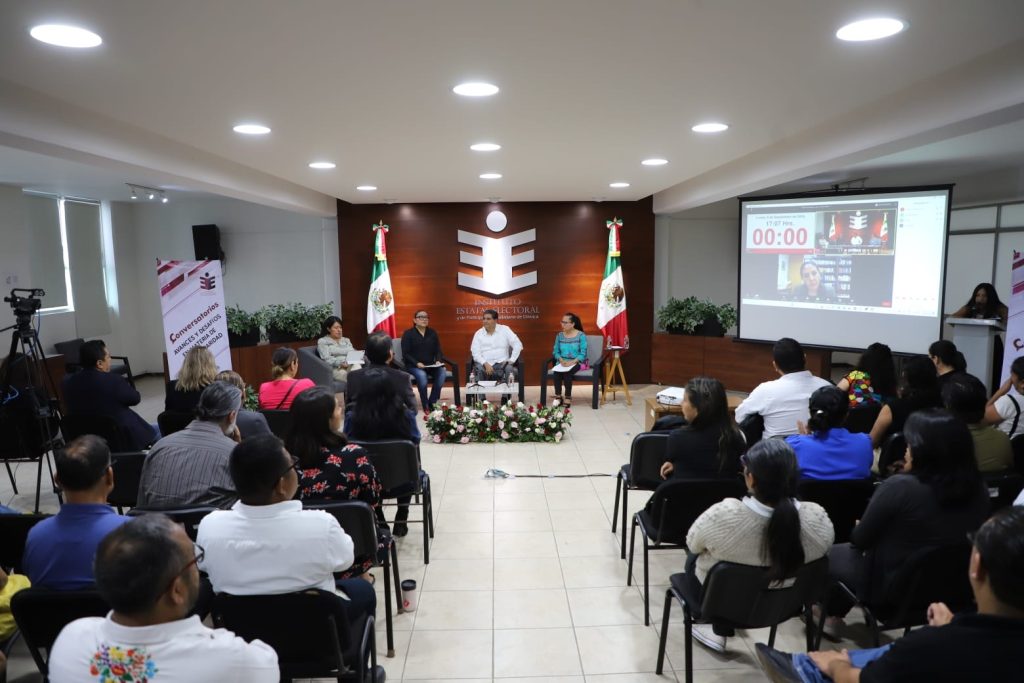 La tarde de este lunes 9 de septiembre, se celebró en la Sala de Sesiones del Instituto Estatal Electoral y de Participación Ciudadana de Oaxaca, el conversatorio Procedimiento Especial Sancionador, fortalezas y retos en materia de Violencia Política contra las Mujeres en Razón de Género.
