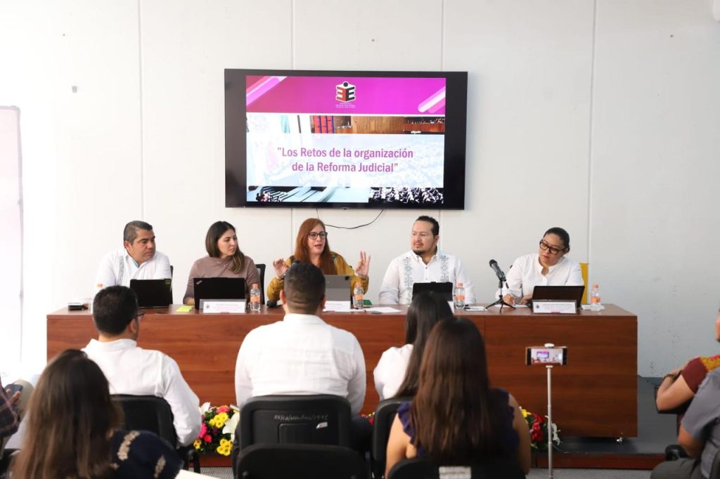 Dentro del Marco del Plan de trabajo de la Comisión Permanente de Organización y Capacitación Electoral y Vinculación con el INE, el Instituto Estatal Electoral y de Participación Ciudadana de Oaxaca, realizó este lunes 4 de noviembre en las instalaciones de la Universidad Multiversidad, Mundo sin Fronteras, el panel “Los retos de la organización de la Reforma Judicial”, con el objetivo de analizar y dar a conocer el funcionamiento de la nueva reforma judicial.