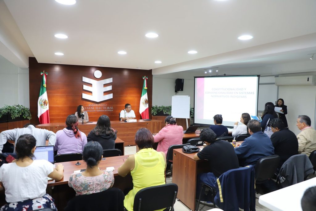 Este 3 de octubre por la tarde, se realizó el segundo taller del ciclo de capacitaciones sobre Sistemas Normativos Indígenas denominado “Autogobierno indígena, herramientas teórico-prácticas para una perspectiva pluricultural”, que realiza el Instituto Estatal Electoral y de Participación Ciudadana de Oaxaca, dirigido a las personas trabajadoras del Instituto, con el objetivo de fortalecer los conocimientos en materia de derechos de los pueblos indígenas.