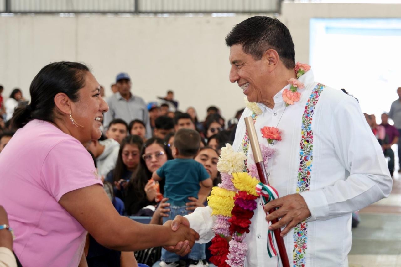 San Pedro y San Pablo Teposcolula, Oax. 26 de marzo de 2025.- Al arribar a este Pueblo Mágico, sede de monumentos que realzan la riqueza de la cultura mixteca, el Gobernador Salomón Jara Cruz anunció que la Primavera Oaxaqueña pavimentará 1.8 kilómetros de la calle que conduce al Instituto Tecnológico Superior de Teposcolula.