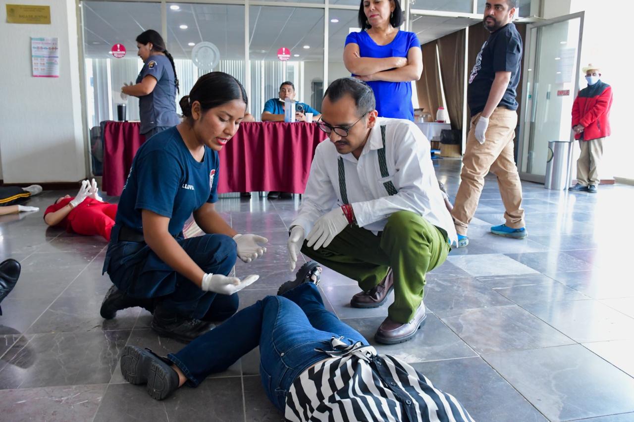 Personal adscrito a las diversas áreas del Congreso del Estado fue instruido y puso en práctica diferentes ejercicios que involucran la evaluación de una persona lesionada, como la apertura de la vía aérea, la búsqueda de respiración con la observación de la expansión torácica y movimientos abdominales, la circulación y control de hemorragias.