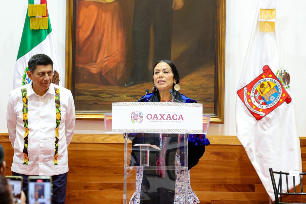 En su oportunidad, la cantante oaxaqueña agradeció esta distinción, al tiempo de reconocer el trabajo que el Gobierno del Estado realiza para fortalecer la cultura y las artes de Oaxaca, una tierra que dijo, es ejemplo del valor por el crisol de belleza que aporta al mundo, junto con el significado de sus costumbres y la sobrevivencia de las tradiciones que siempre se transforman sin perder su esencia que cautiva.