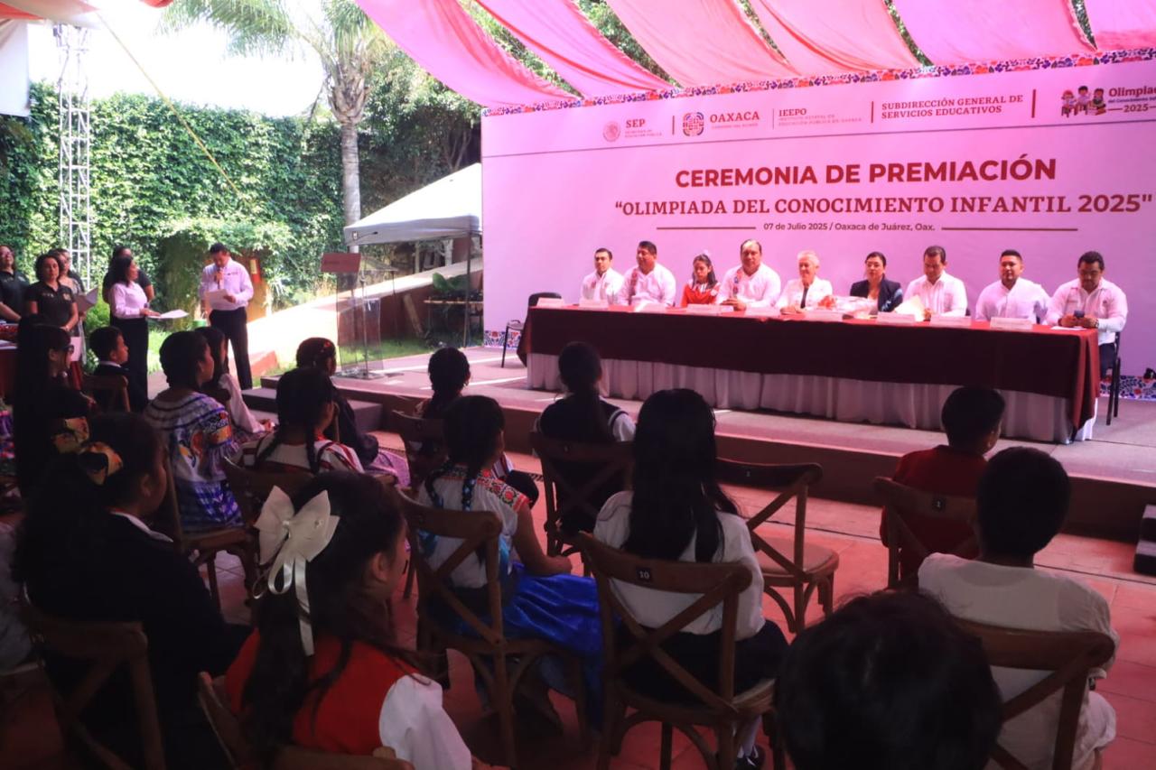 Oaxaca de Juárez, Oax. 7 de julio de 2025.- En un emotivo encuentro, el Instituto Estatal de Educación Pública de Oaxaca (IEEPO), en representación del Gobernador Salomón Jara Cruz, reconoció el esfuerzo, disciplina y excelencia académica de 54 alumnas y alumnos de sexto grado de primaria, ganadores en la entidad de la Olimpiada del Conocimiento Infantil 2025, convocada por la Secretaría de Educación Pública (SEP) Federal.