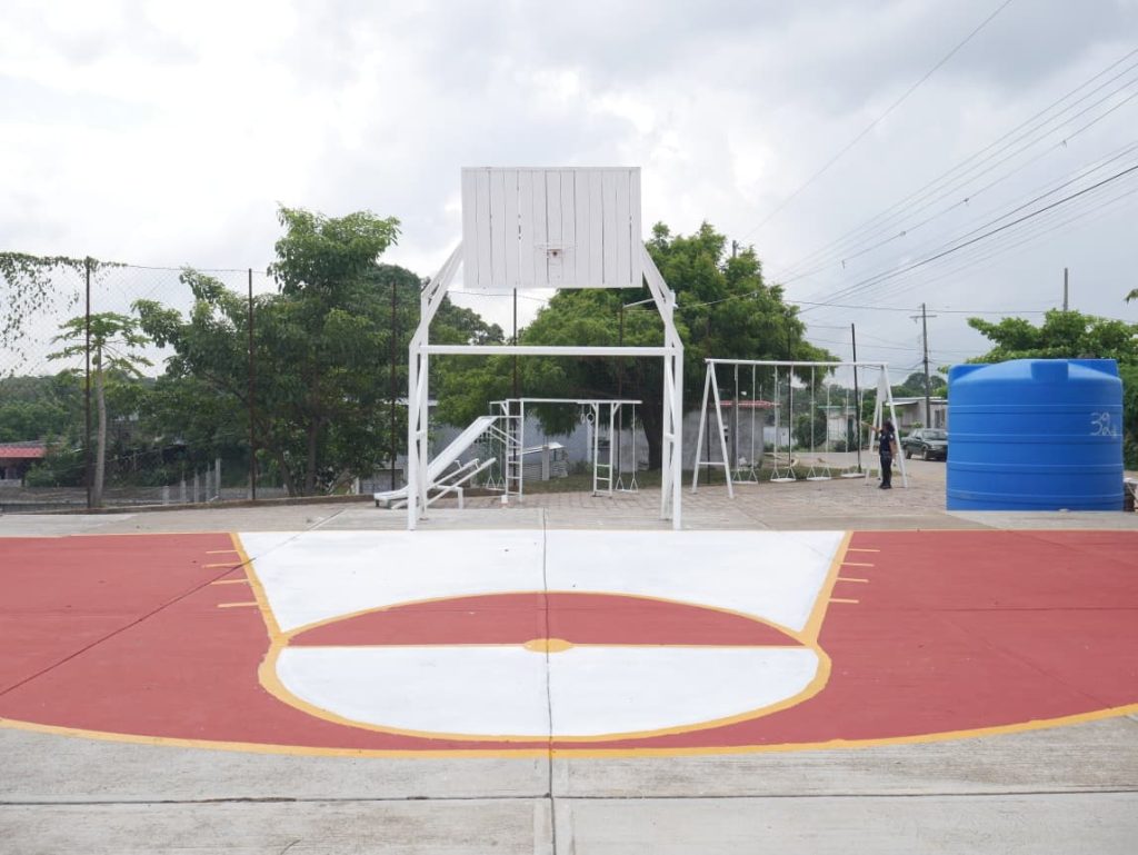 En la cancha de básquetbol de la colonia La Oaxaqueña, se realizaron labores de pintura de gradas y muros perimetrales; lavado, barrido y rehabilitación de estructuras metálicas, transformándola en un espacio digno para la convivencia.