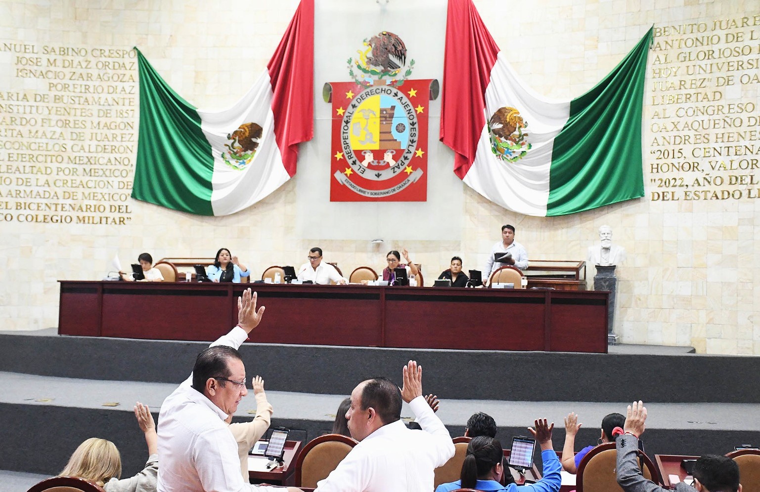 San Raymundo Jalpan, Oax. 23 de octubre de 2024.- Con 34 votos a favor, el Pleno de la LXV Legislatura local aprobó la reforma a la Constitución de Oaxaca, propuesta por el gobernador Salomón Jara Cruz, para que se garantice la disponibilidad del agua en el estado.