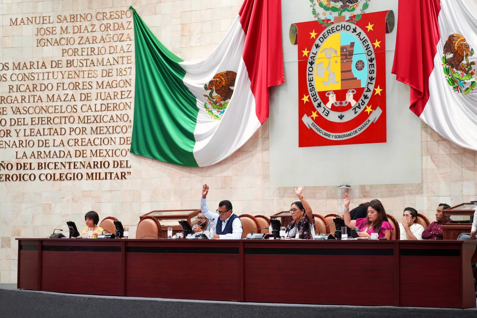 San Raymundo Jalpan, Oax. 10 de septiembre de 2024.- El Pleno de la LXV Legislatura local aprobó con 32 votos, en lo general y en lo particular, la reforma a la Ley Orgánica del Poder Ejecutivo, para que personas deudoras alimentarias o condenadas por delitos de violencia familiar o por razón de género, no puedan ser titulares de una dependencia o entidad del Gobierno de Oaxaca.