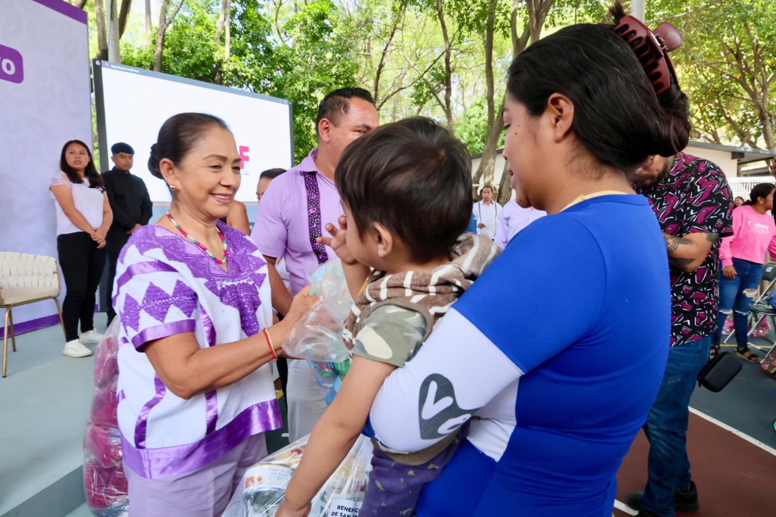 • La Presidenta Honoraria, Irma Bolaños Quijano encabezó la entrega de canastas alimentarias del programa Latido Nutritivo y libros informativos, acompañamiento que permite nutrir con amor a las infancias