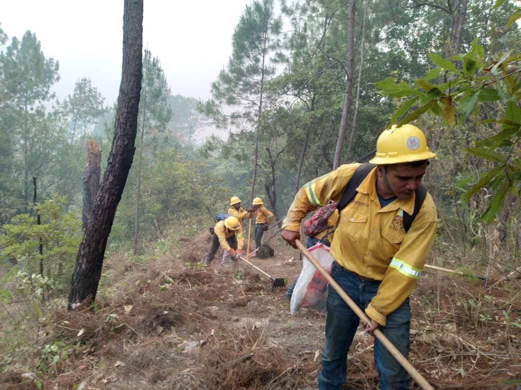 Los trabajos de combate, control y liquidación del fuego son realizados por la brigada oficial de combatientes con sede en Santa María Zacatepec, en coordinación con personas comuneras y elementos de la Guardia Nacional (GN).