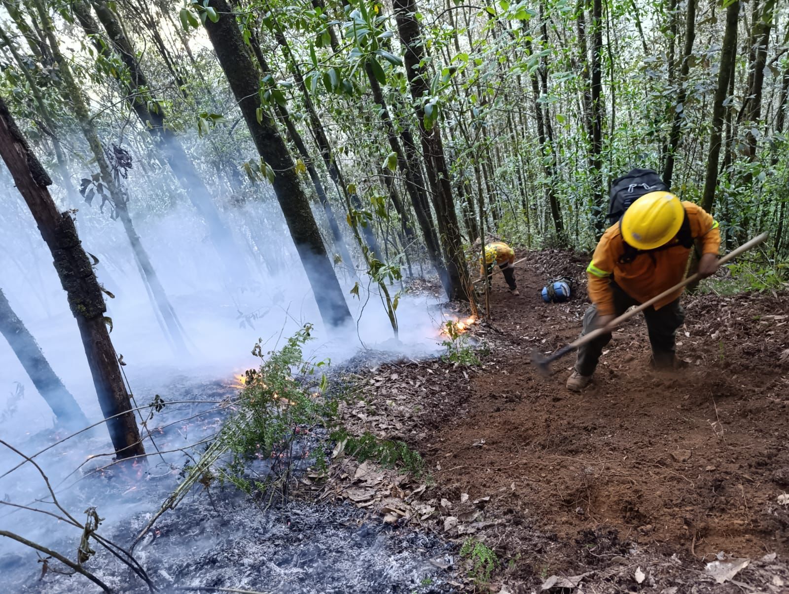 Este martes, tras la contención del fuego, el personal continúa con las labores de liquidación, coordinados con 10 personas comuneras y pobladoras de la zona, con un avance del 60 por ciento en estas acciones.