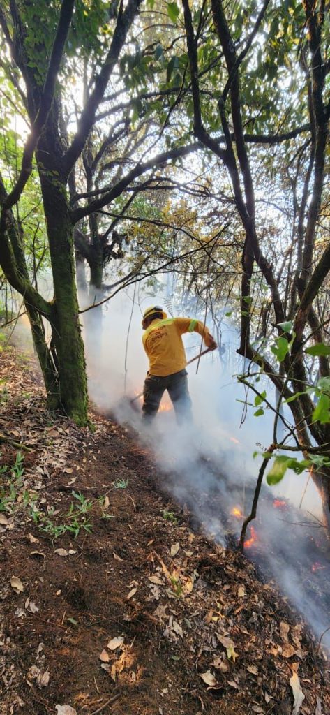 A través de la brigada San Juan de los Cués, Coesfo realizó labores de apertura de brechas cortafuego para la contención del avance de las llamas en el área, además de zanjas bordo, con la finalidad de detener cualquier material rodante que pudiera encender un foco secundario.