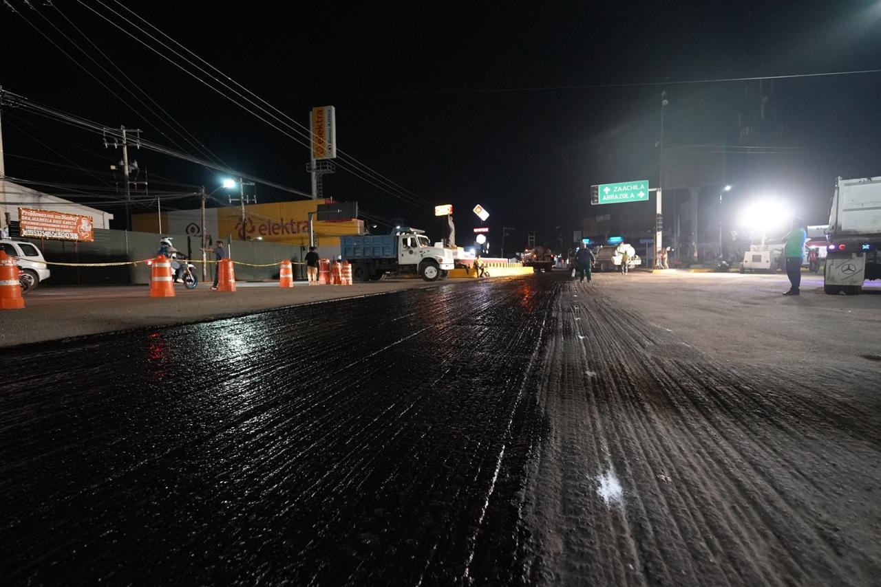 El titular de la Secretaría de Infraestructuras y Comunicaciones (SIC), Carlos Vichido Hernández expresó que respecto a tareas de reencarpetamiento, hasta el momento se han rehabilitado 77.28 kilómetros de vialidades con fresado, retiro de pavimento dañado y tendido de asfalto nuevo.