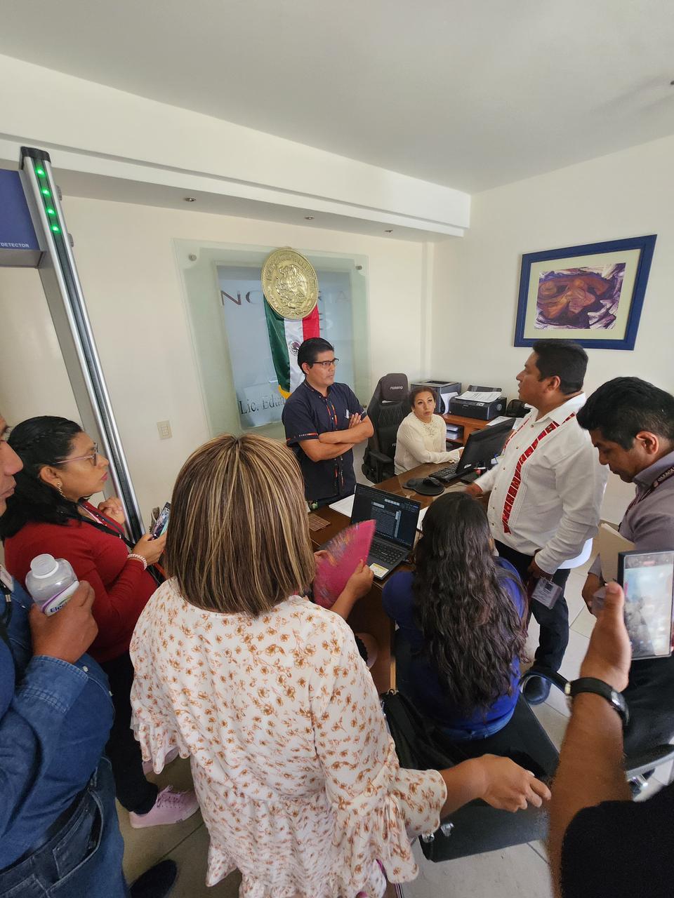 La tarde de este viernes, personal de Notarías acudió a la calle Juan N., Álvarez 604 del barrio San Lorenzo en Zimatlán de Álvarez, donde, con las formalidades de ley, se realizó la notificación a Eduardo García Corpus, otorgándole un plazo de dos días para que de manera voluntaria entregue libros y apéndices que conforman su protocolo y el sello físico para su destrucción.