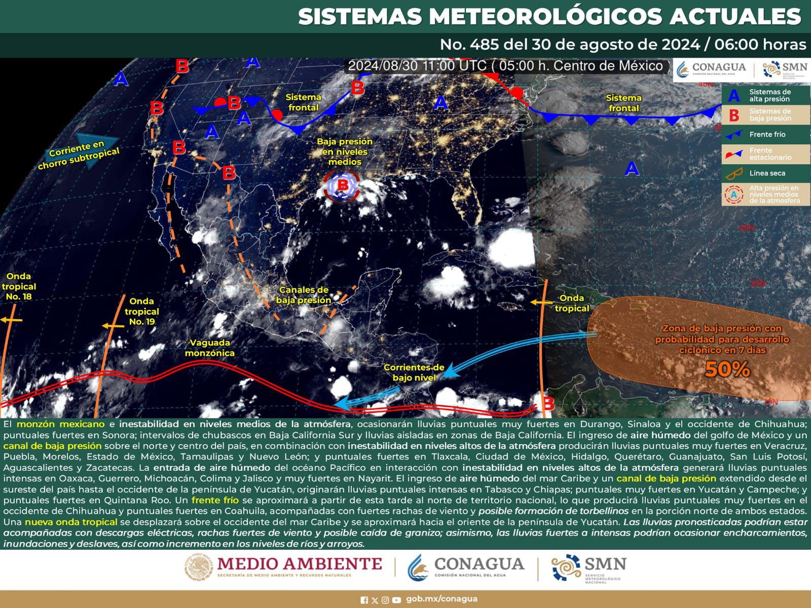 Oaxaca de Juárez, Oax. 30 de agosto de 2024.- La Coordinación Estatal de Protección Civil y Gestión de Riesgos (CEPCyGR) informa que para este viernes se esperan lluvias, chubascos, actividad eléctrica y rachas de viento en diferentes puntos del estado, con mayor énfasis en la región de la Mixteca, Sierra de Juárez y Sierra Sur.