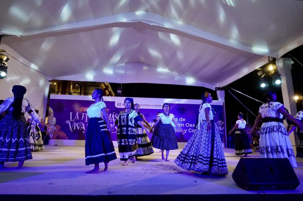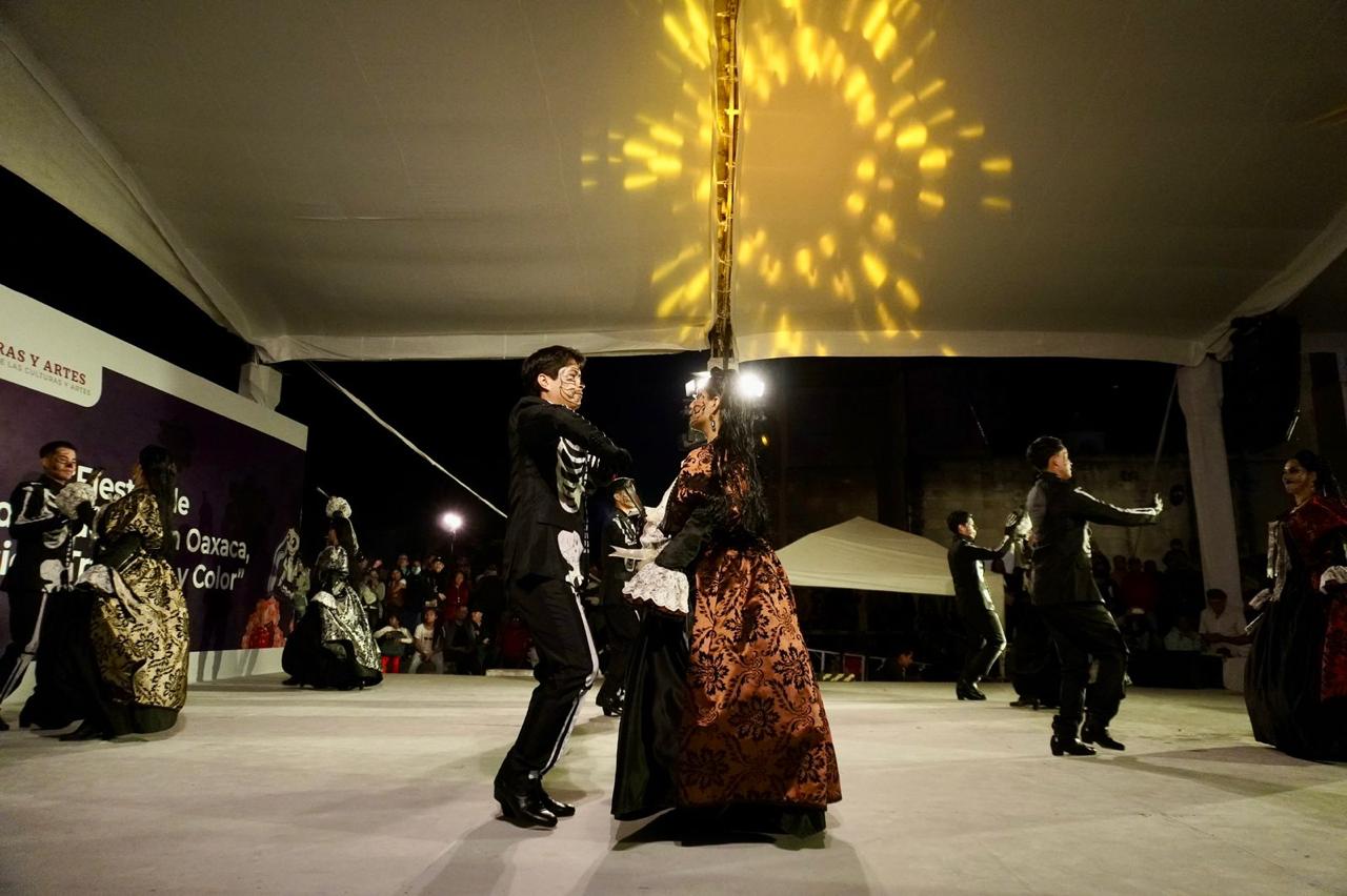 La última actividad del domingo fue el espectáculo: “Oaxaca, entre la vida y la muerte”, a cargo de la Compañía Folklórica “Ritmo de mi raza”. Integrada por jóvenes de 15 años en adelante, dicha agrupación se ha dedicado desde 2011 a difundir y transmitir las manifestaciones culturales del país a través de la danza y la música.