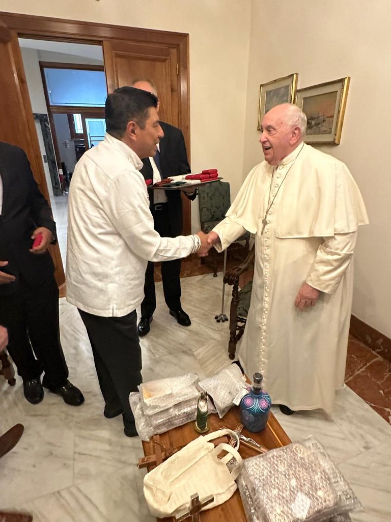 Oaxaca de Juárez, Oax. 23 de octubre de 2024.- El Gobernador Salomón Jara Cruz se reunió con el jefe del Estado Vaticano, Su Santidad el Papa Francisco a quien invitó a visitar el estado de Oaxaca.