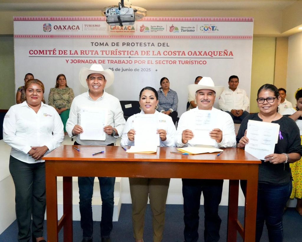 Santa María Huatulco, Oax. 5 de junio de 2025.- La titular de la Secretaría de Turismo del Estado (Sectur), Saymi Pineda Velasco tomó protesta a integrantes del Comité de la Ruta Turística de la Costa Oaxaqueña, a través del cual se impulsará la promoción y desarrollo de este sector en Santa María Huatulco, San Pedro Pochutla, Santa María Tonameca, Santa María Colotepec, San Pedro Mixtepec y Villa de Tututepec de Melchor Ocampo.