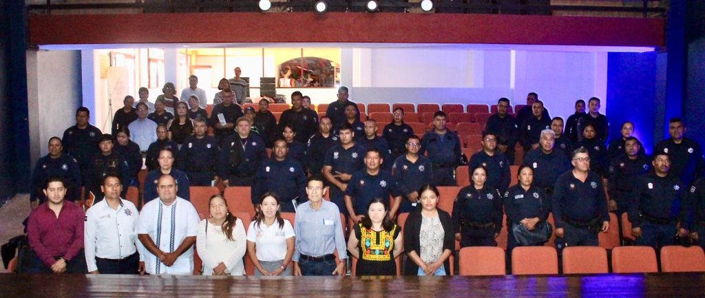 En colaboración con la Unidad Municipal de Reeducación de la Heroica Ciudad de Huajuapan de León, el CREHVM impartió la capacitación «La masculinidad como constructo social» a servidoras y servidores públicos del ayuntamiento de dicha localidad, así como a 56 policías municipales.