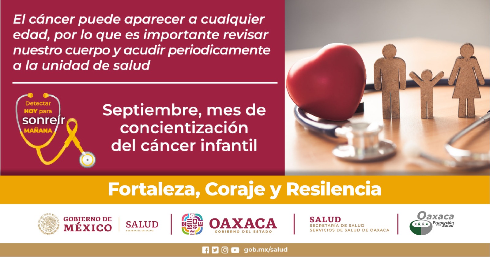 Oaxaca de Juárez, Oax. 2 de septiembre de 2024.- Con motivo de “Septiembre, mes de la Concientización del Cáncer Infantil”, Servicios de Salud de Oaxaca (SSO) centra sus actividades para enfatizar que un diagnóstico y tratamiento oportuno, son clave para mejorar las posibilidades de supervivencia de las niñas, niños y adolescentes.