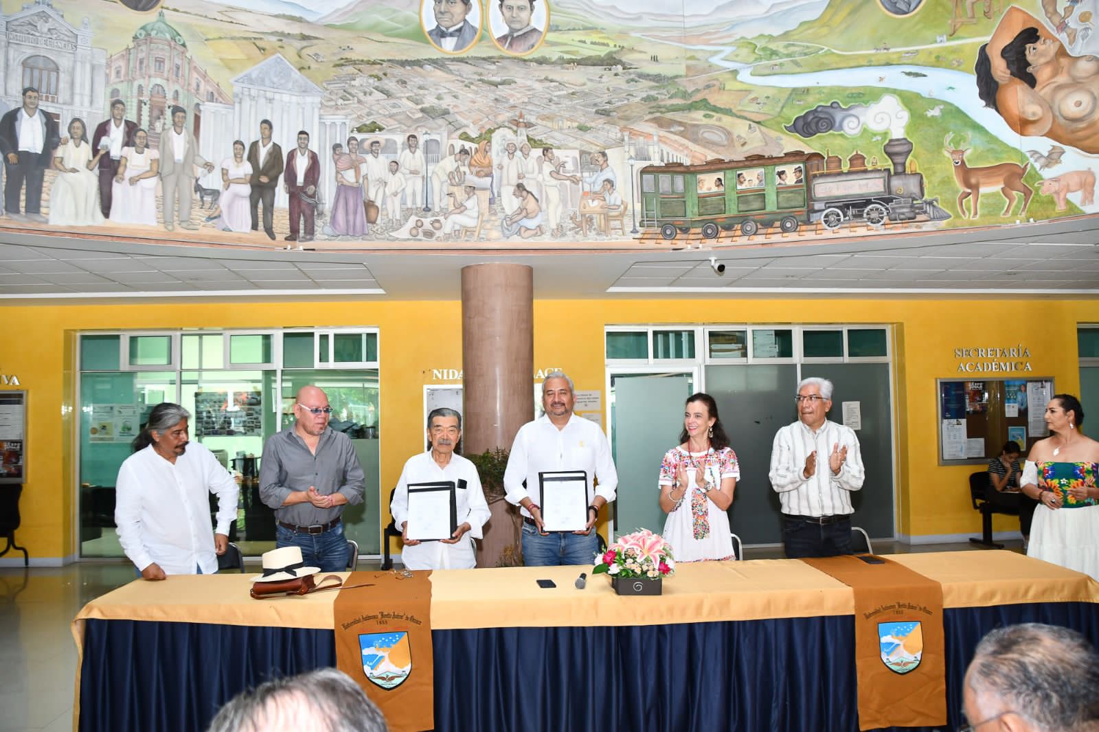 Contar la historia, hacer presencia y permanencia de los inicios de nuestra Universidad, cuando el Instituto de Ciencias y Artes de Oaxaca, abrigó y preparó a hombres y mujeres que con el paso de los años se convertirían en próceres de la patria, científicos, artistas y profesionales que aportaron lo mejor de sí a Oaxaca y a México, esa es la finalidad del mural “Siglo XlX UABJO” que hoy entregaron a nuestra Universidad el Maestro Shinzaburo Takeda como autor principal, y los maestros Fulgencio Lazo, Rolando Rojas, Saúl Castro e Israel Nazario, dijo el Rector, Mtro. Cristian Eder Carreño López.