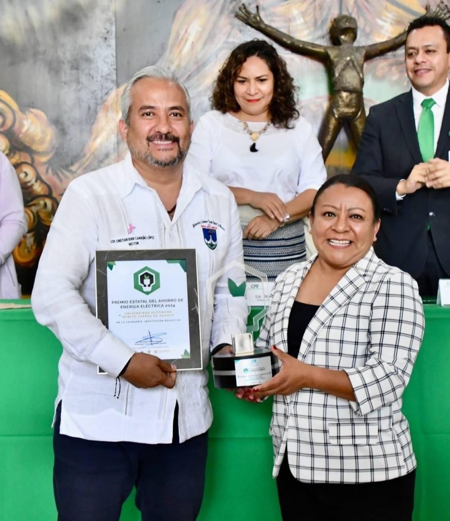 Oaxaca, Oax. 21 de octubre de 2024.- La Universidad Autónoma “Benito Juárez” de Oaxaca, recibió el Premio Estatal de Ahorro de Energía Eléctrica 2024, en la categoría de institución educativa, otorgado por la Comisión Federal de Electricidad, por utilizar la energía de mejor manera y promover el ahorro de luz en sus instalaciones, específicamente en Ciudad Universitaria.