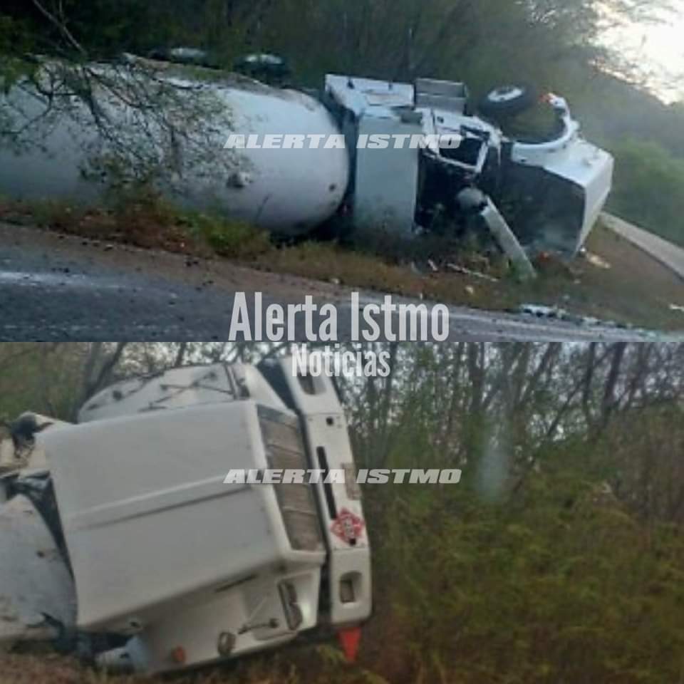 Esta tarde se registró la salida de camino con volcadura de una pipa de gas propiedad de la empresa Grupo D’amiano, los hechos sobre carretera costera tramo #SalinaCruz – #Huatulco, a la altura de La Piedra del Rosario.